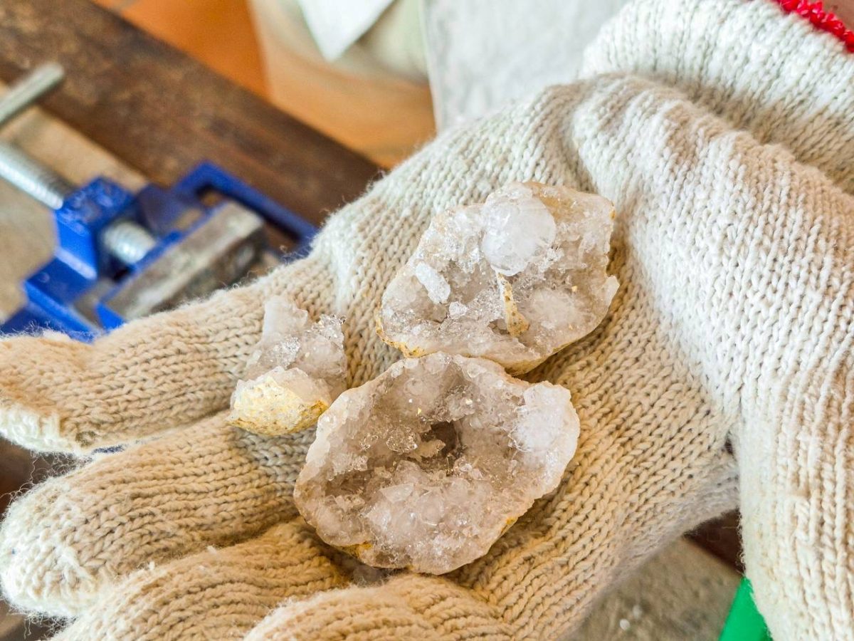 可以買一顆水晶原礦石,然後透過工作人員的指導下敲出美麗的礦石晶洞。
